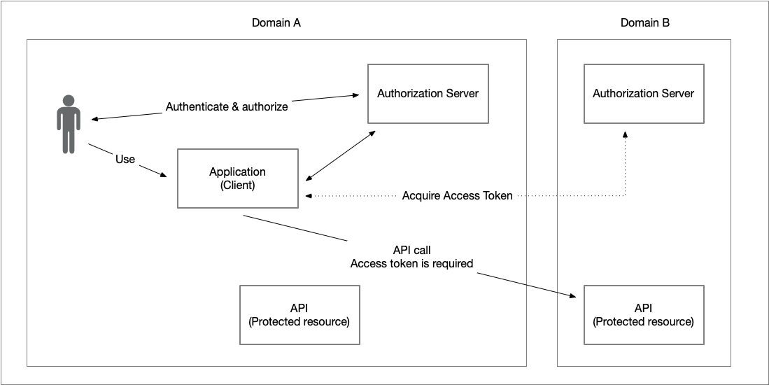 Given this access token, the application in domain A can now call the protected resource https://api.domain-b.com